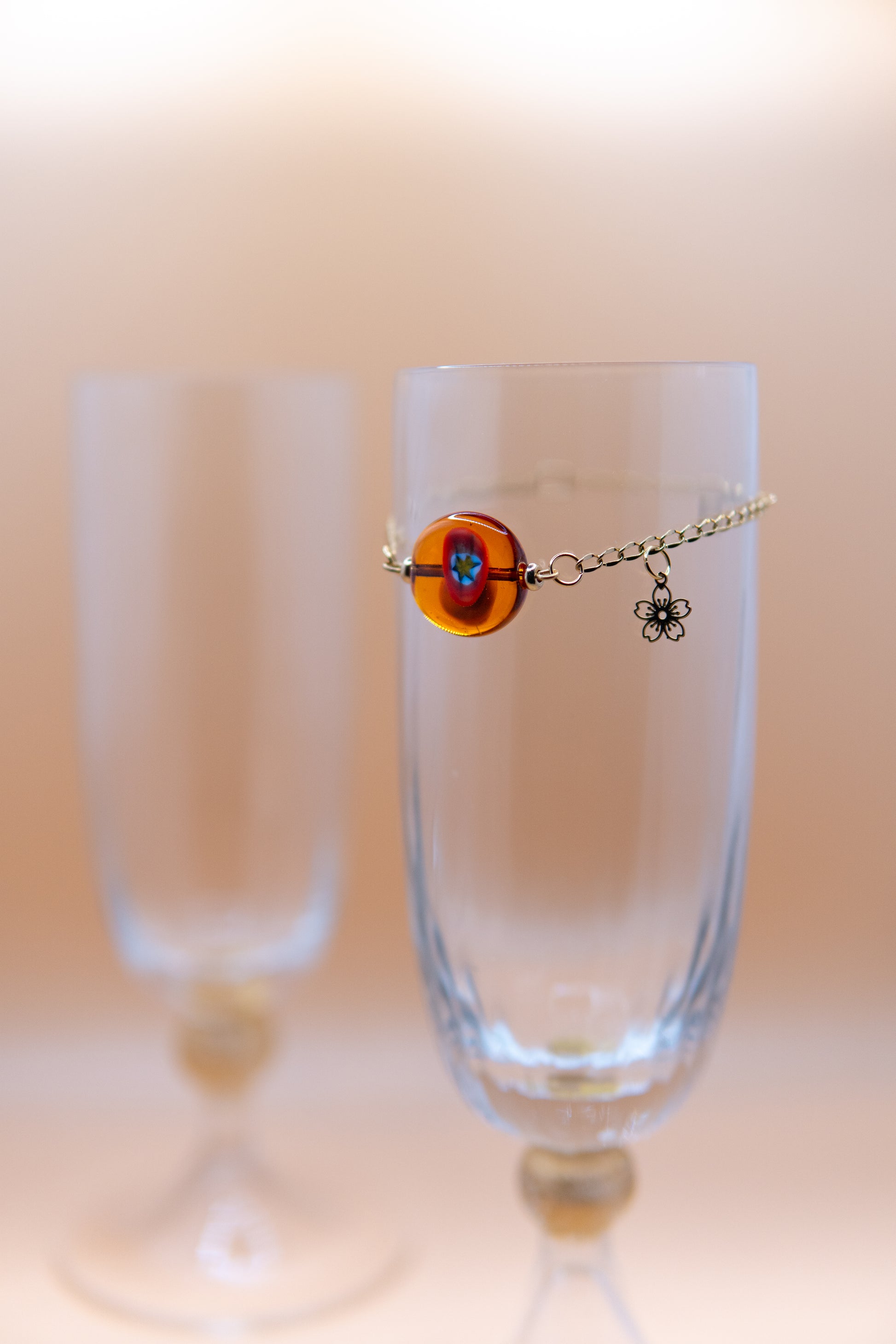 Bracciale Momòn. Momòn, vezzeggiativo veneziano per “ caramella ”, è un bracciale che conquista con la sua dolce semplicità. La catena dorata è intervallata da una perla con murrine colorate e da un delicato ciondolino dorato che aggiunge un tocco di movimento e luce. Una piccola dolcezza artigianale da indossare: semplice ma prezioso, Momòn è il bracciale perfetto da portare da solo per un look pulito, oppure insieme ad altri bracciali per un effetto ancora più ricco e personale.